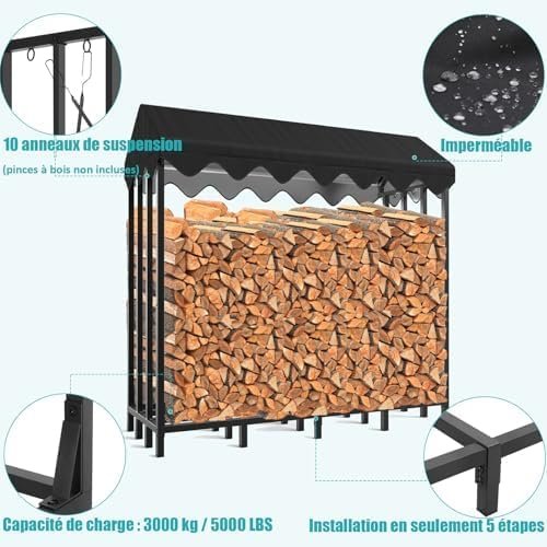 - [Grand Espace de Rangement] Dimensions de 185 x 70 x 185 cm offrant de la place pour 2,4 m³ de bois, idéal pour des bûches d’au moins 25 cm.