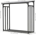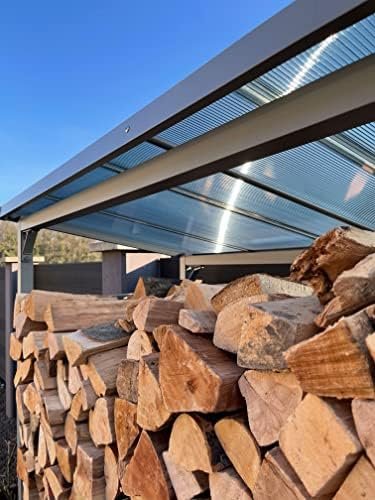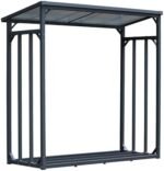 Taille 143x70x145cm Toit en polycarbonate avec des profilés en aluminium Cadre de base en acier peint en gris Stockage pour 1,4 bois cubique Les marchandises sont livrées démontées pour l’auto-assemblage. Le bois n’est pas inclus. Regardez le même article en aluminium sous: B07XPGZM6Q